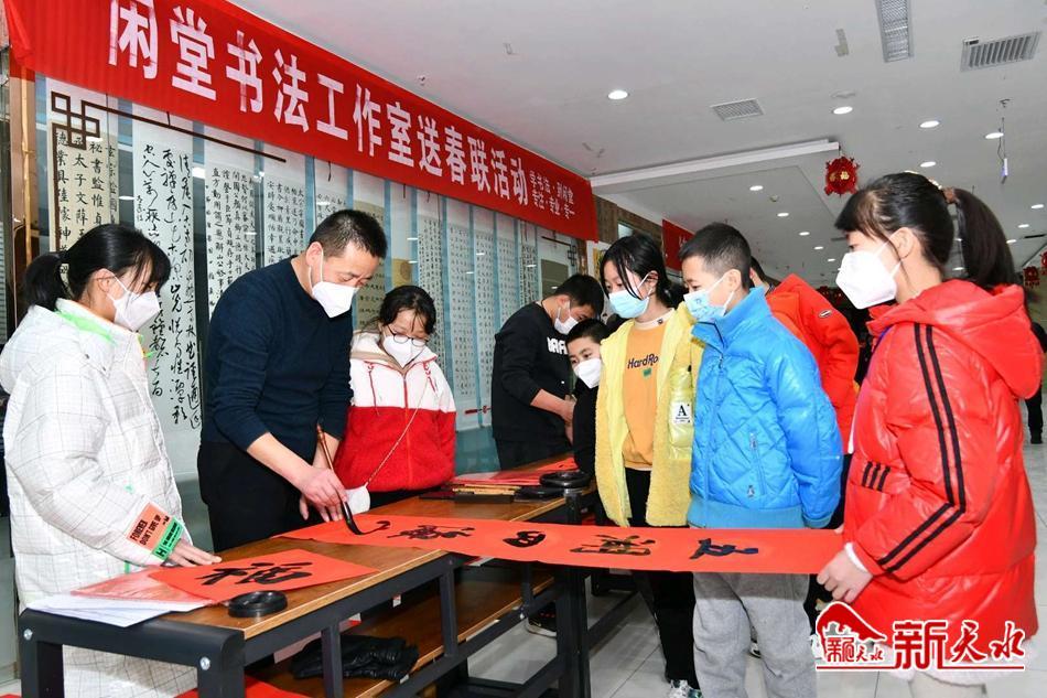 新天水讯【特约通讯员窦耀辉 窦艺】1月17日,麦积区闲堂书法工作室“迎春送福写对联、红红火火过大年”玉兔纳福送春联新时代文明实践活动在桥南广丰·文化广场举行。