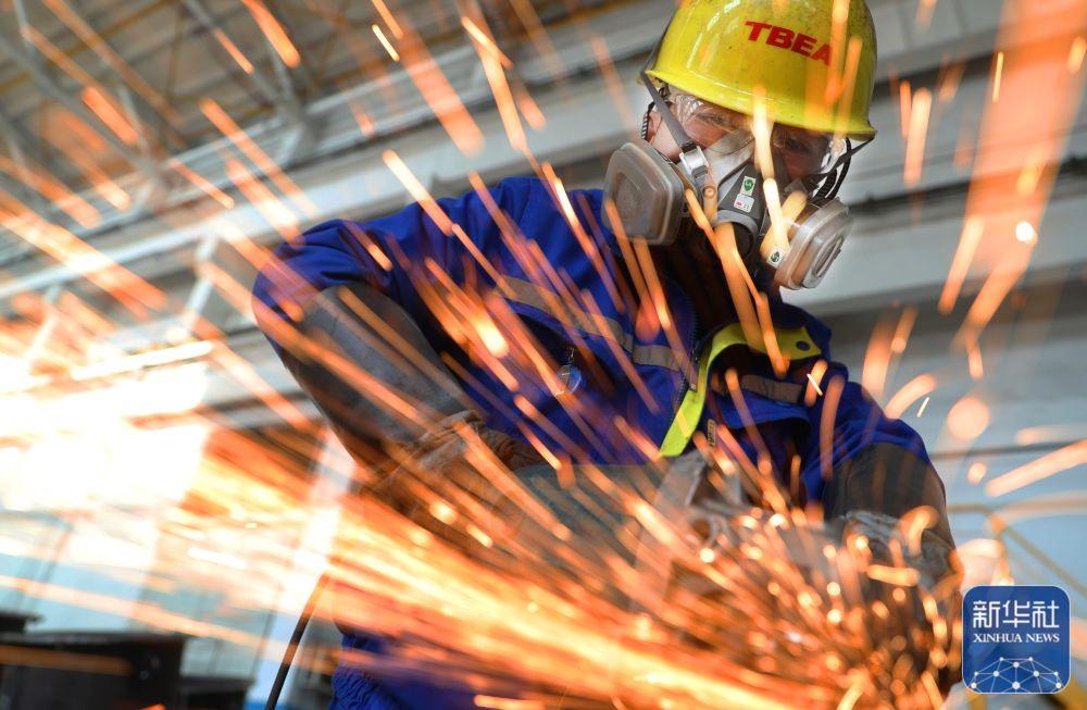 1月28日,在湖南省衡阳市,特变电工衡阳变压器有限公司工人进行打磨作业。新华社发(曹正平 摄)