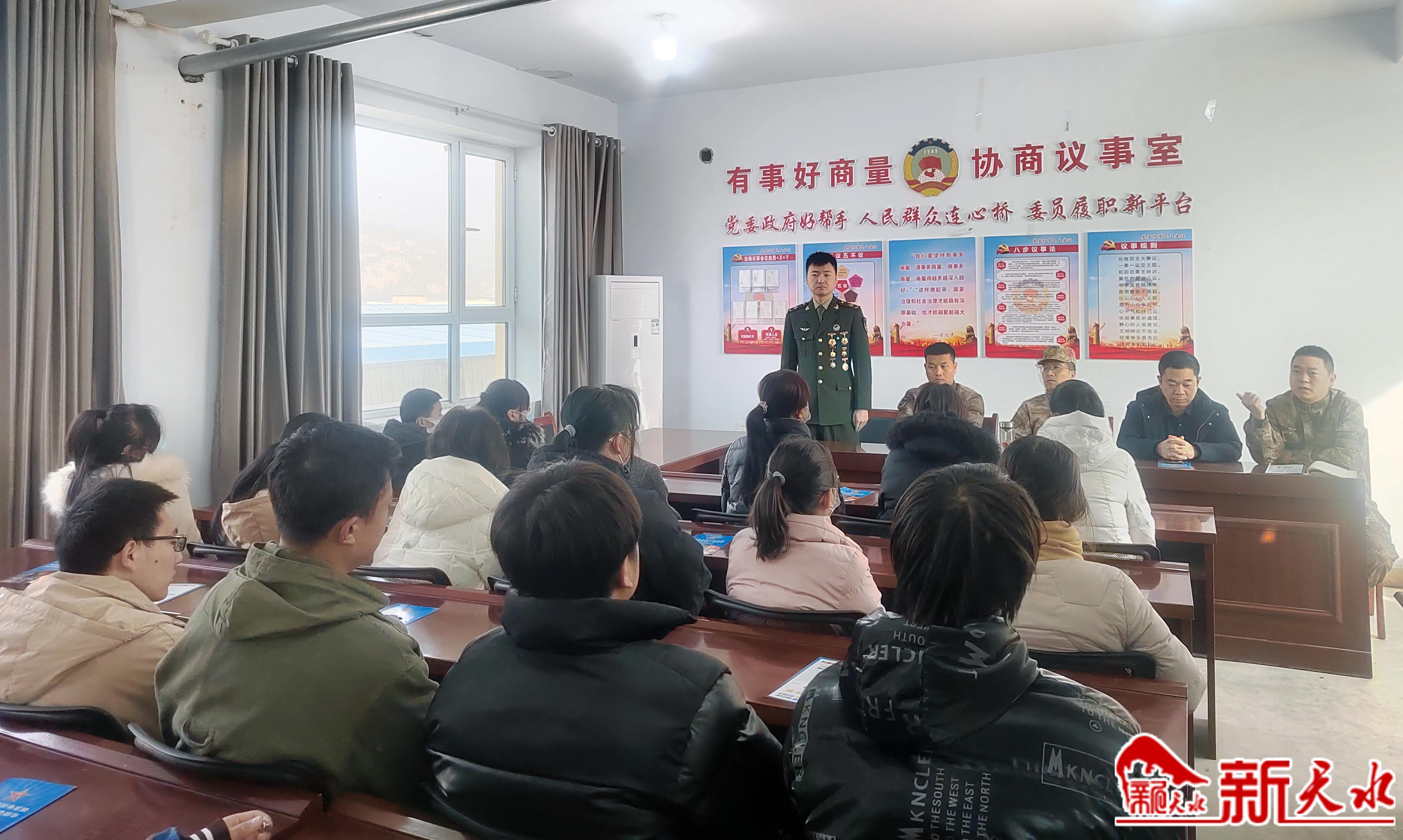 新天水讯【记者王莹】1月30日,麦积区人武部邀请连续两次荣立三等功的驻新疆某部天水籍现役军人程凯,在伯阳镇的征兵宣传动员会上向来自全镇的50余名大学生及其家长讲述自己当兵成长、成才立功的经历,引导更多大学生走进军营绽放青春,参军报国。