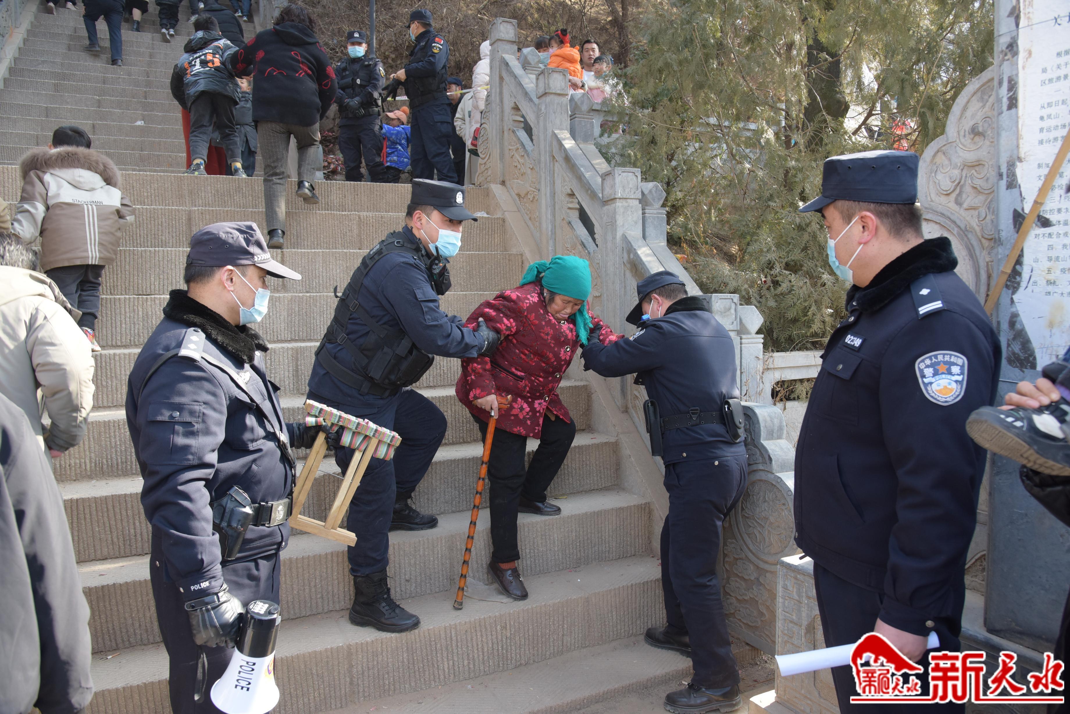 “大家不要拥挤,排队按顺序走。”1月30日,麦积镇崇福寺庙会上,面对蜂拥而至的人群,麦积公安民警拿着话筒不停喊话,耐心疏导人流,确保群众安全。