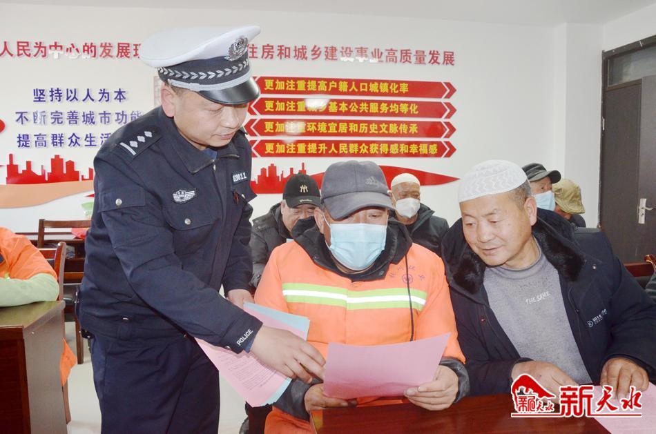 新天水讯【记者余碧波】1月31日,张家川回族自治县公安局交警大队组织县住建局环卫所开展交通安全知识培训,单位相关负责人及环卫车驾驶员、清扫员70余人参加了道路交通安全培训。
