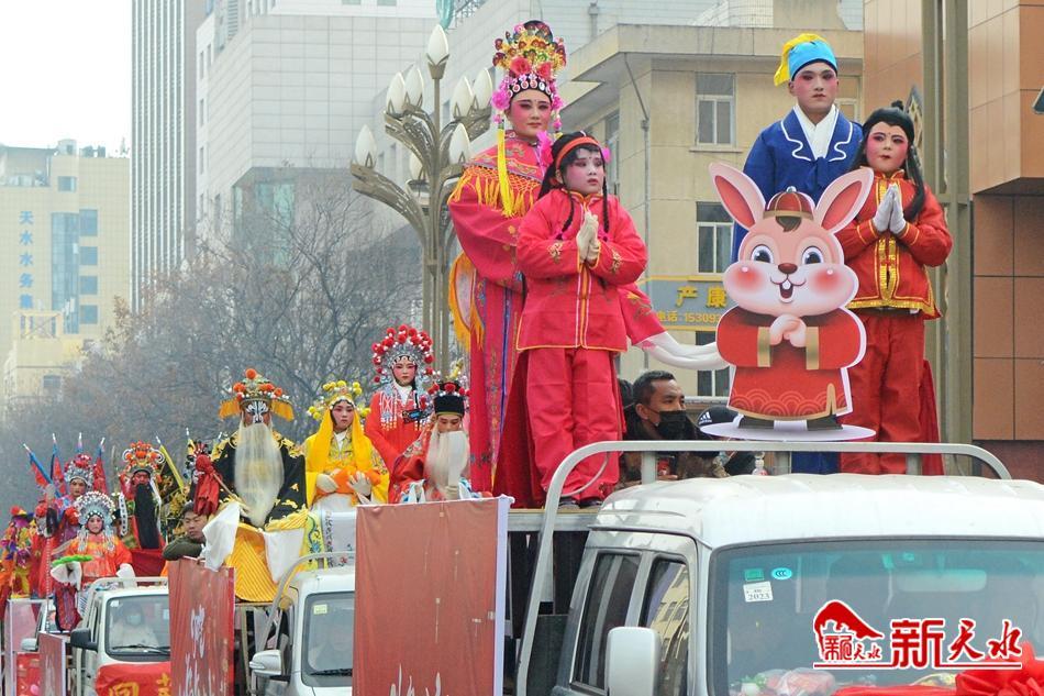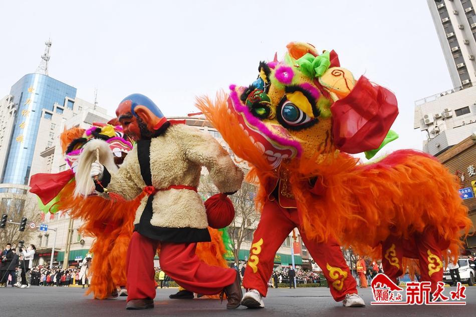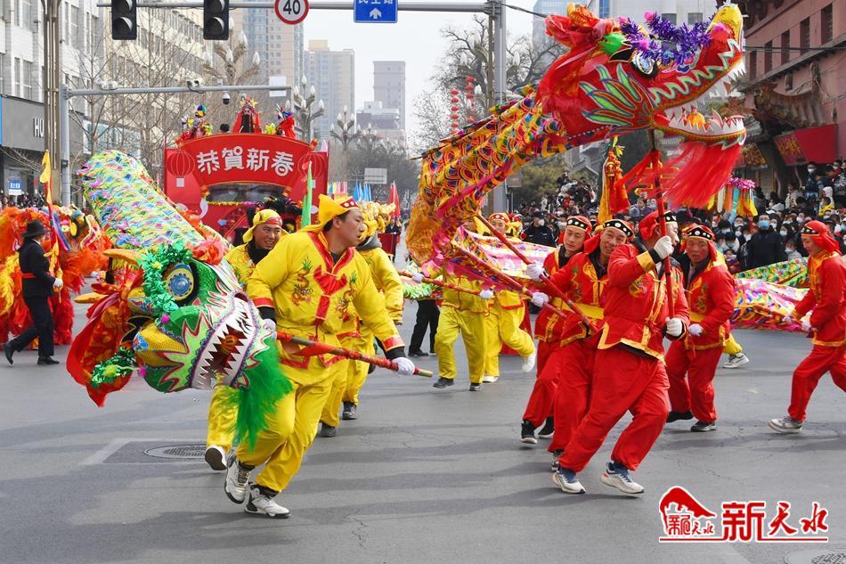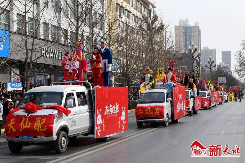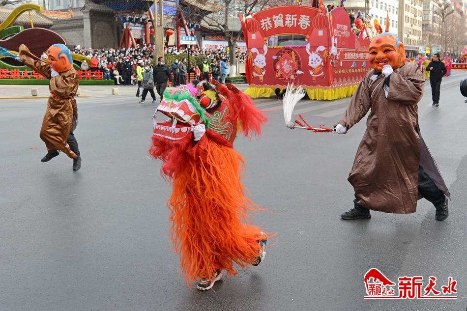 舞龙舞狮划旱船,敲锣打鼓迎新年。2月2日,天水市秦州区“玉兔闹新春·辉煌新征程”春节民间社火民俗艺术汇演活动举行。