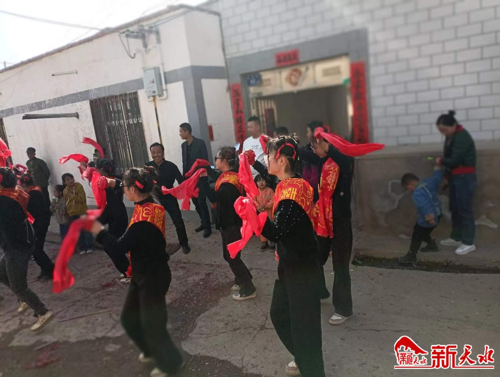 接下来唱秧歌。有时唱四五折,有时唱两三折,唱的内容丰富多彩,《转娘家》《南桥担水》《怕老婆》《顶灯》等等,也有秦腔、舞蹈、独唱,小品等。最近几年,唱的少了,新增加了扭扭队,男女各十几人。唱一两折,扭扭队上场,扭二三十分钟。旱船划一阵,狮子舞一段。一晚的秧歌就闭幕了。