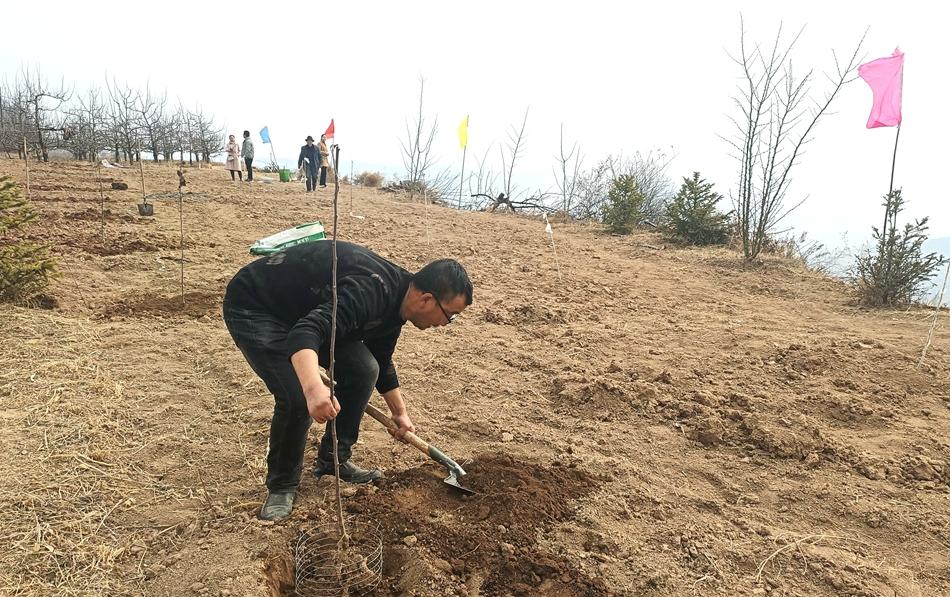 在麦积区马跑泉镇光坡梁片带一处山腰间的果园里,季先珍和父亲细心地将苹果树苗栽到土壤经过改良后的丰产沟中。一株株新栽的树苗在春风里昂然挺立,焕发出勃勃生机。