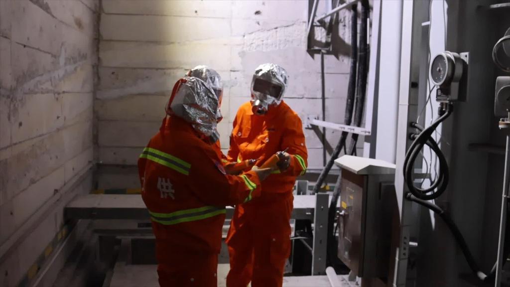 22时47分,由于供电分区所设备可能在特定条件下产生泄漏,分离出有毒气体,变电检修工需要佩戴防毒面罩进行安全检查。