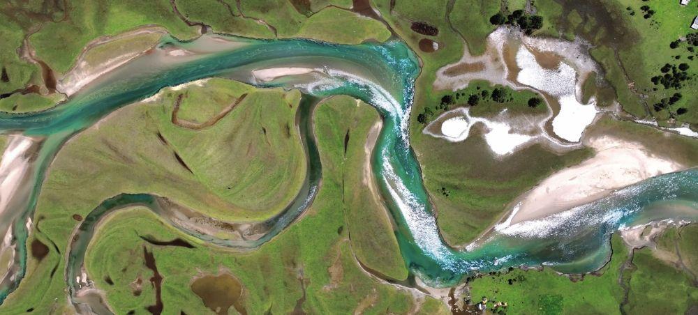 走向新措,沿途溪水潺潺,山林与草甸交织,静谧安然。