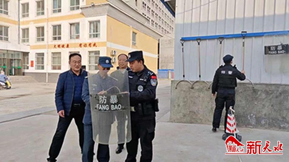在甘谷一中、甘谷职业技术学校,特巡警大队民辅警按照实战、实用、实际的原则,对学校安保人员和教职员工开展安全理论知识和实践警械操作培训,现场演练如何应对处置突发事件,讲解日常工作应注意的事项及盘查技巧,传授防暴钢叉、抓捕器、盾牌、橡胶棍等警械正确使用方法和技巧,并与安保人员进行了模拟对抗演练。