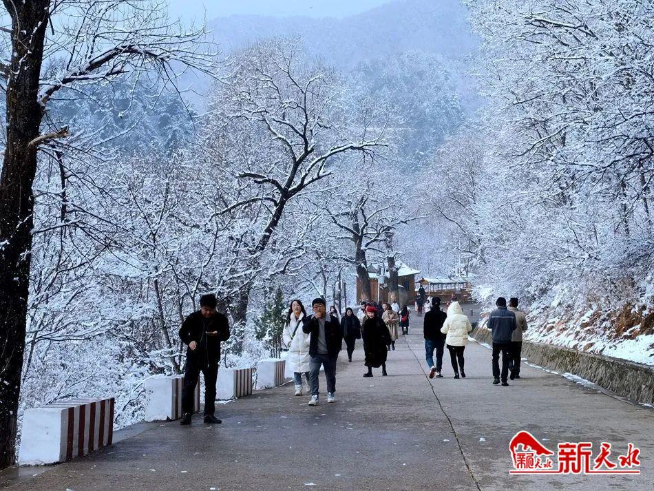 走进麦积山景区,只见绵延起伏的山峦、生机勃勃的树木花草都被皑皑白雪覆盖,粉妆玉砌的冰雪景观让人心旷神怡,如同走进了如梦如幻、如诗如画的人间仙境。上山路上游人如织,大家呼朋引伴步行在景区宽敞平坦的路上,纷纷拿出手机和相机拍照记录,小朋友们兴奋地捡起地上的积雪跑来跑去打雪仗。景区里传来阵阵游人的欢笑声与风吹树叶发出的沙沙声,呈现出一幅人与自然和谐相处的美好画卷。