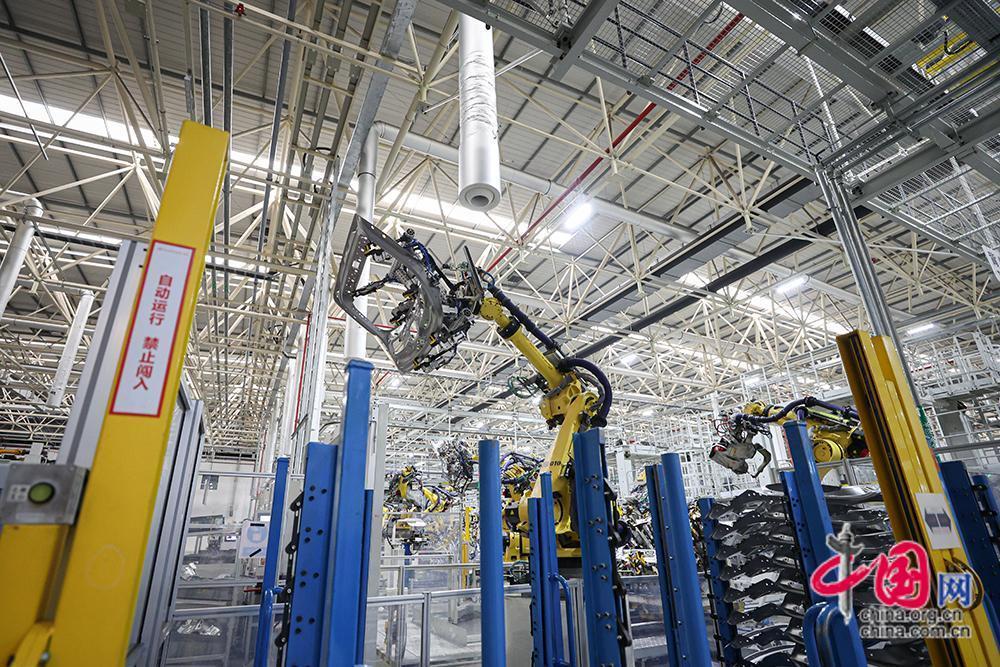 赛力斯汽车是重庆及两江新区新能源汽车的代表性企业,走进赛力斯两江智慧工厂车间,记者看到同时超1000台机器人协同运作实现高度自动化,不仅有效降低了人力成本,还能让制造更有精度。