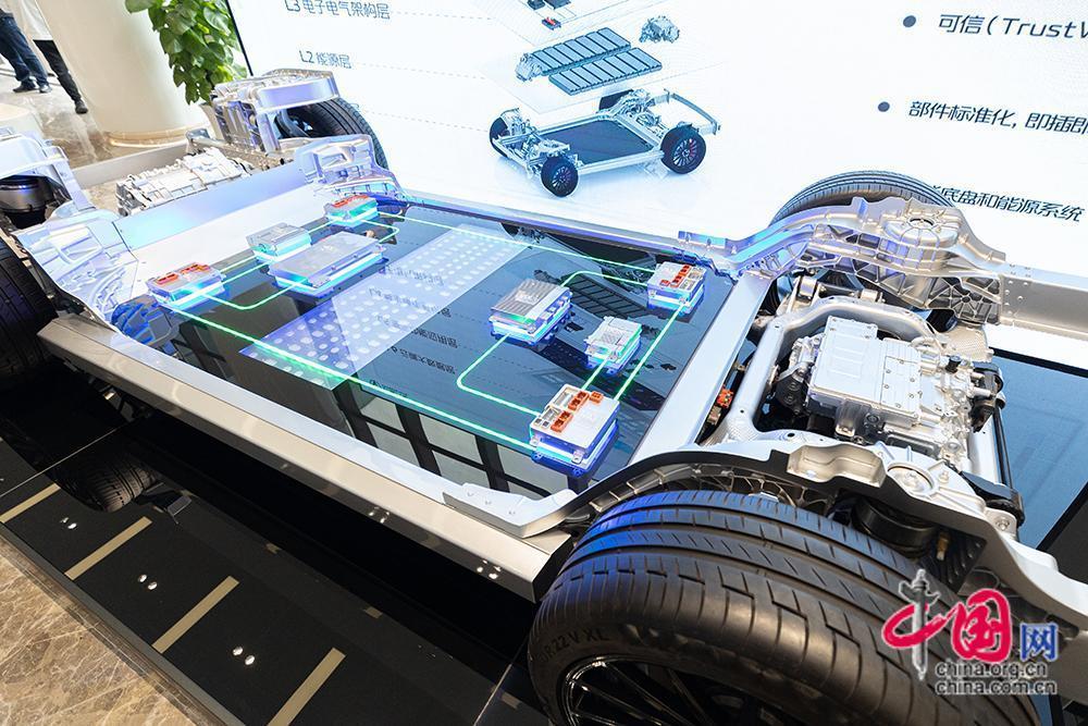 图为长安汽车与华为、宁德时代共同打造的智能电动网联汽车平台CHN模型。中国网记者 伦晓璇 摄