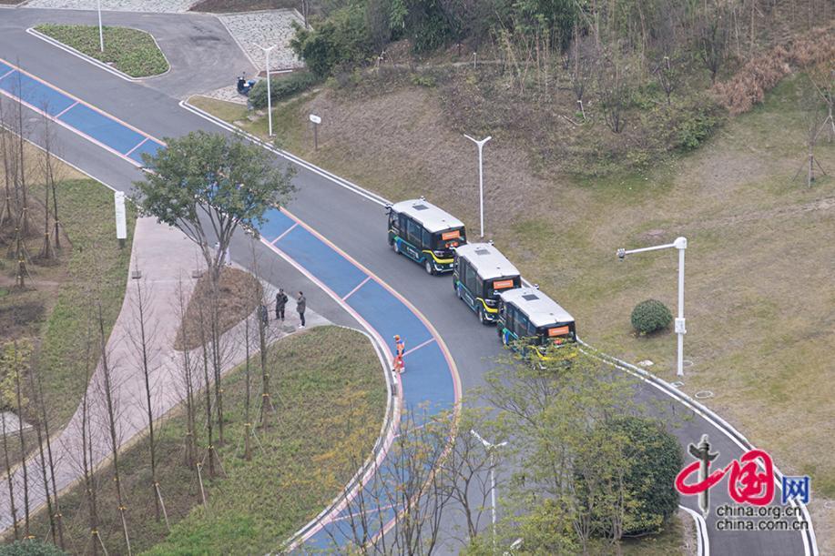 在两江协同创新区园区内停泊的智能网联车辆。车辆系统根据行驶任务和环境信息,转换为控制系统的各类信号,从而实现科学决策和安全行驶。中国网记者 伦晓璇 摄