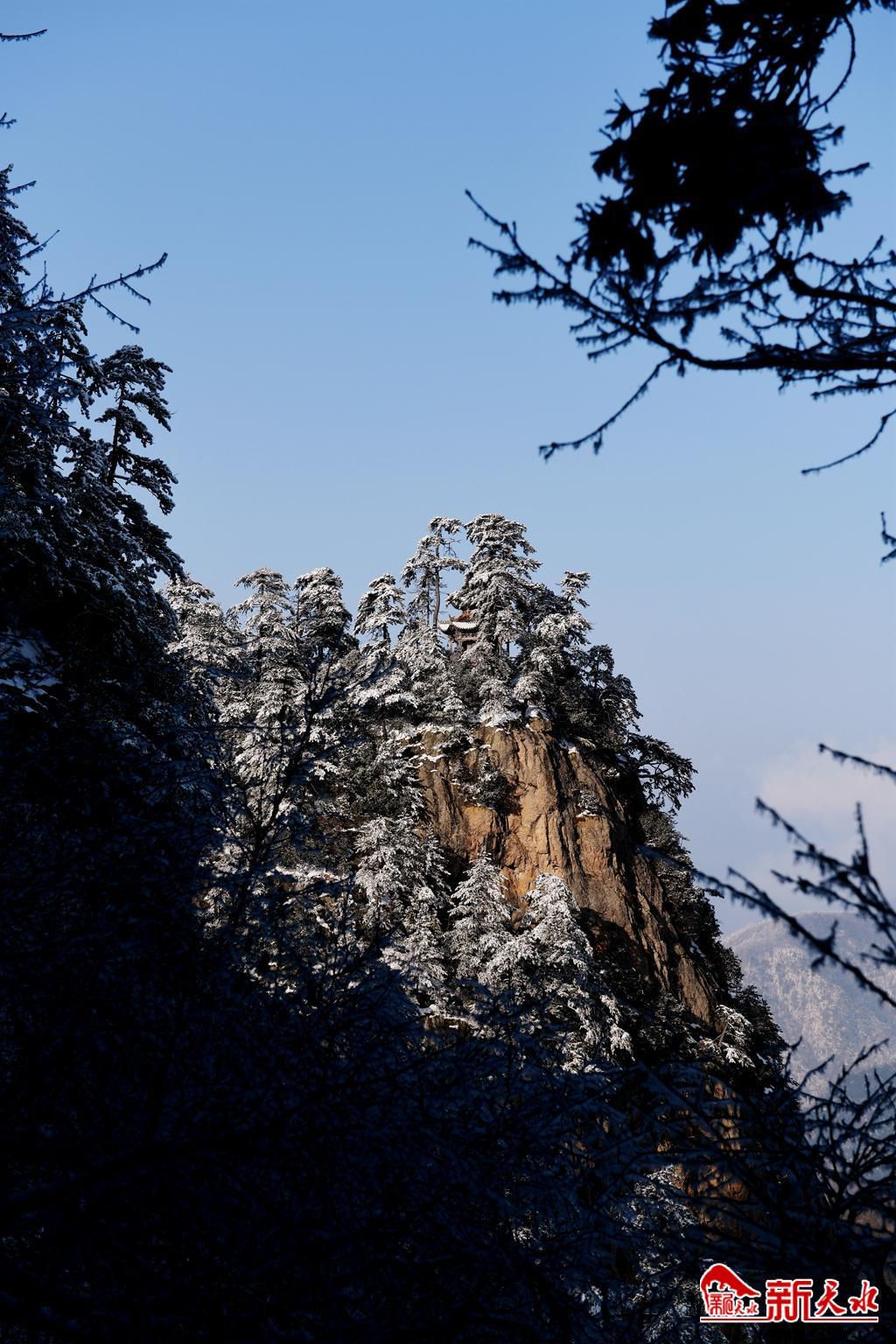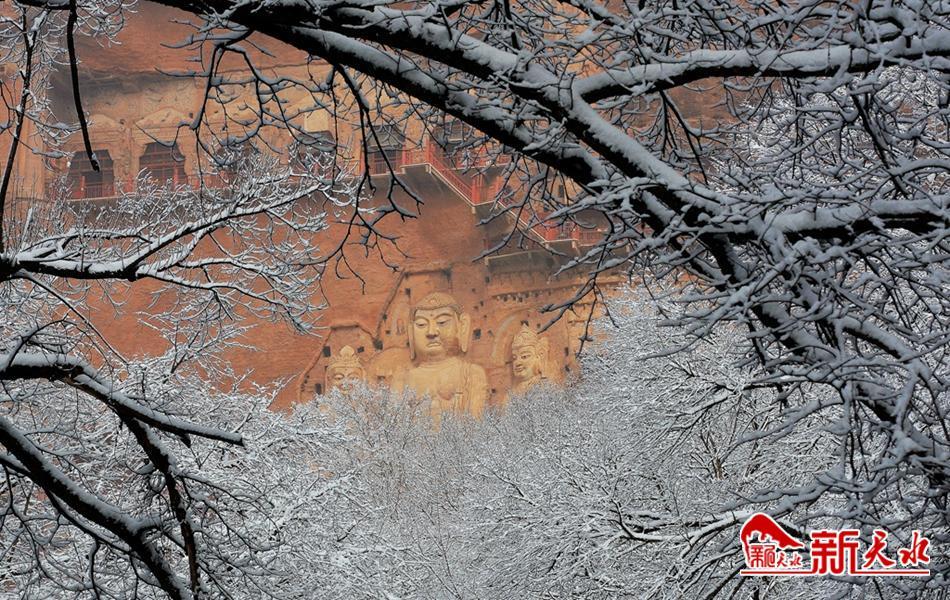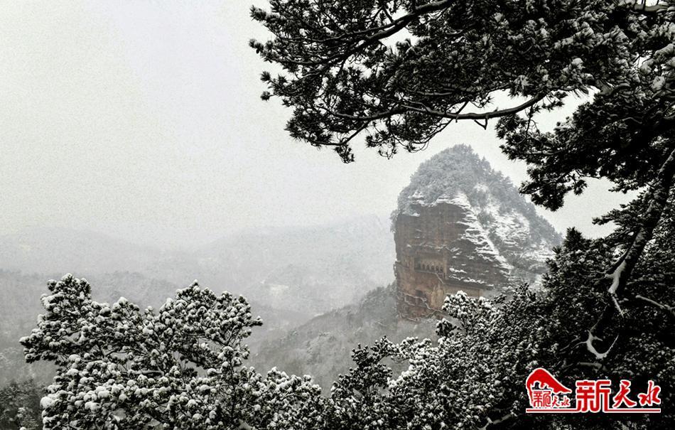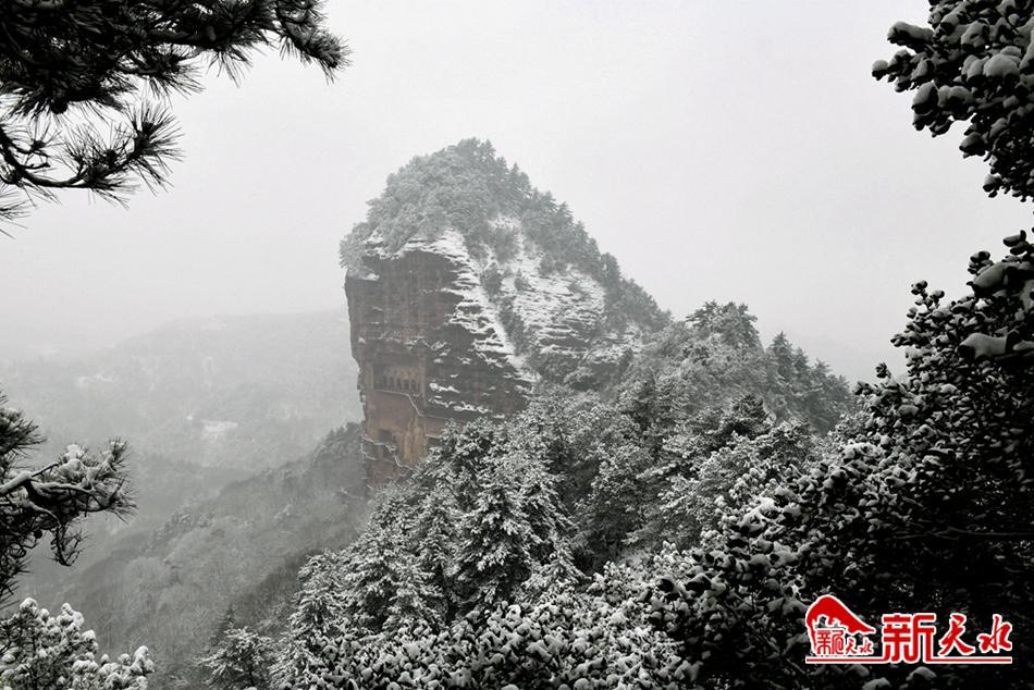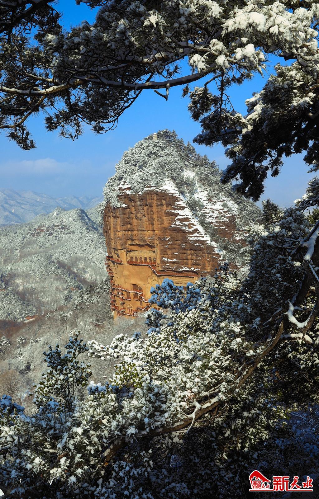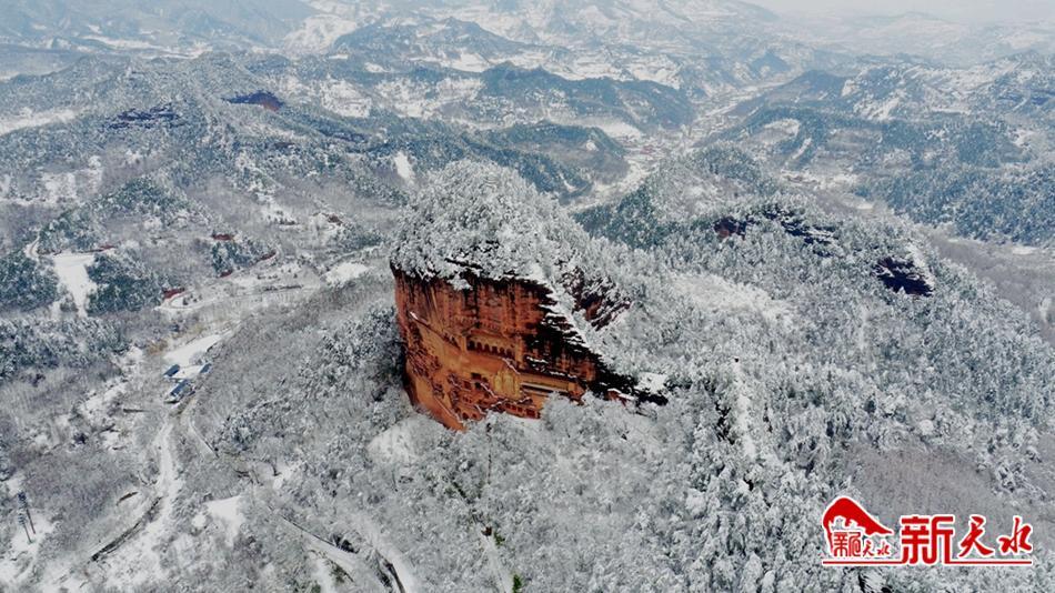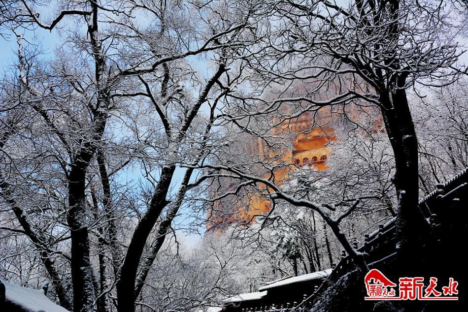 天水最美的雪,落在了麦积崖,仙人湖,也落在了高耸入云的石门山。