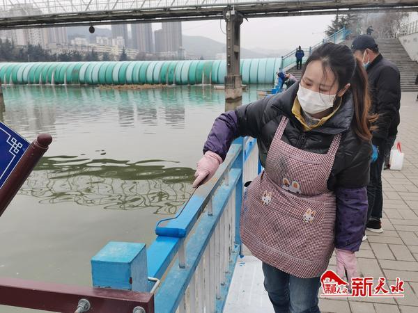 因日晒雨淋,我市不少铁制护栏存在油漆老化问题,2月20日,工人对天水湖防护栏除锈刷漆,既延长了护栏使用寿命,也美化了城市环境。