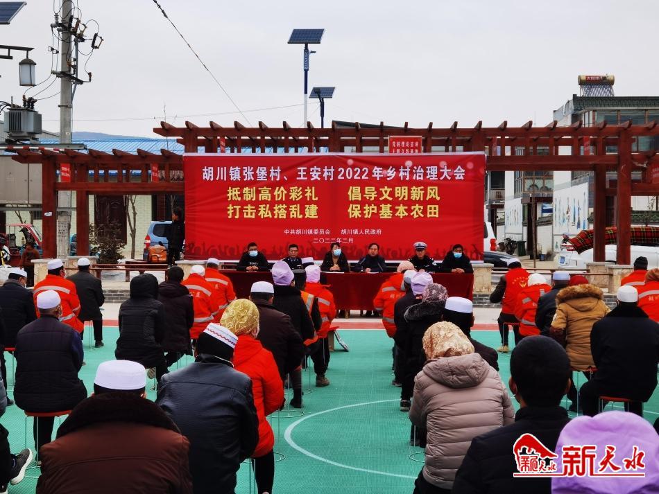 为进一步弘扬中华民族传统美德,积极培育和践行社会主义核心价值观,在全镇范围内开展抵制高价彩礼、倡导文明新风、打击私搭乱建、保护基本农田的专项行动,提升群众生活质量、改善群众精神面貌,胡川镇还组织全镇16个新时代文明实践站举行乡村治理大会,对各村的“先进组长”“先进公岗”“和谐家庭”等代表进行表彰并开展乡村治理宣传活动,弘扬社会主义核心价值观,引导文明乡风新气象。