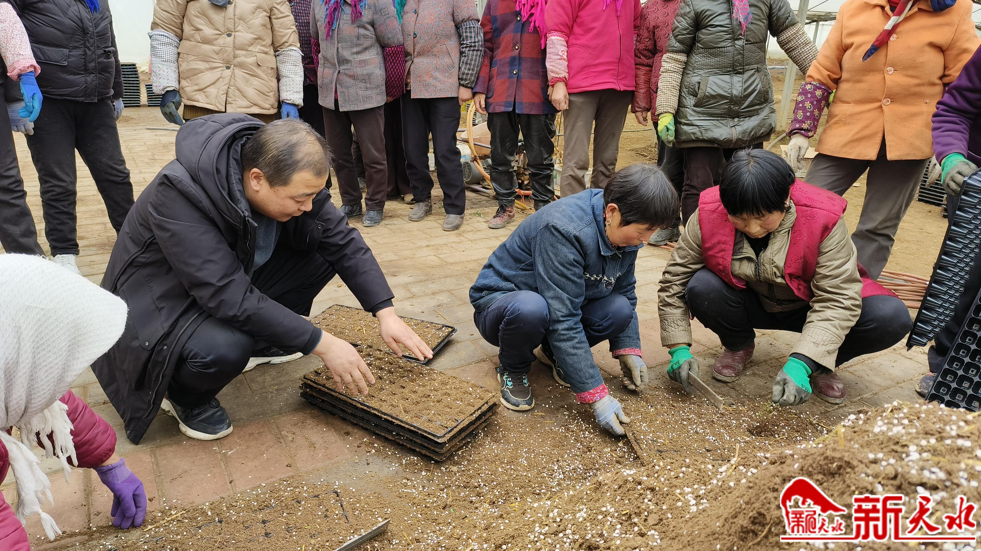 “放的不要太浅,最好用手再扶一下,使种子和基质充分地接触,这样水分就吸收均匀了,之后上面再覆一层基质,有利于苗子发芽……”秦州区农业农村局经济作物工作站站长李惠东正手把手地指导种植户育苗。