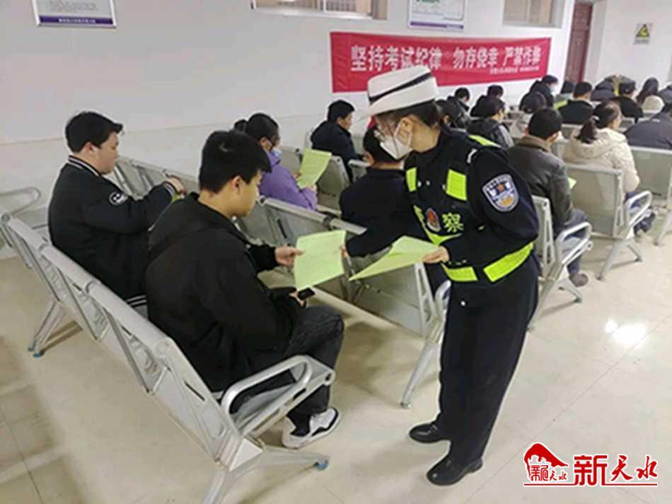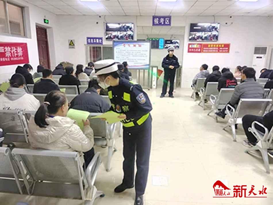 新天水讯 2月23日,秦安县公安局交警大队组织宣传民警走进辖区天秦驾校旭伟考试场,以“七进”活动为契机,开展交通安全宣传活动。
