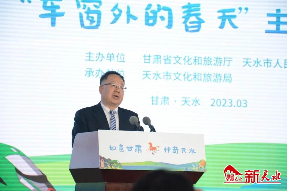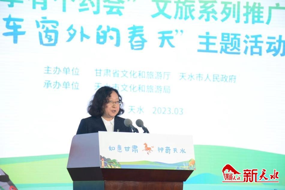 新天水讯【记者马哲】3月2日,省文化和旅游厅在天水市举办“我和四季有个约会”文旅系列推广活动——“车窗外的春天”主题活动。省文旅厅党组成员、副厅长万学科出席推介活动并讲话,市委常委、副市长张宇晶致辞。