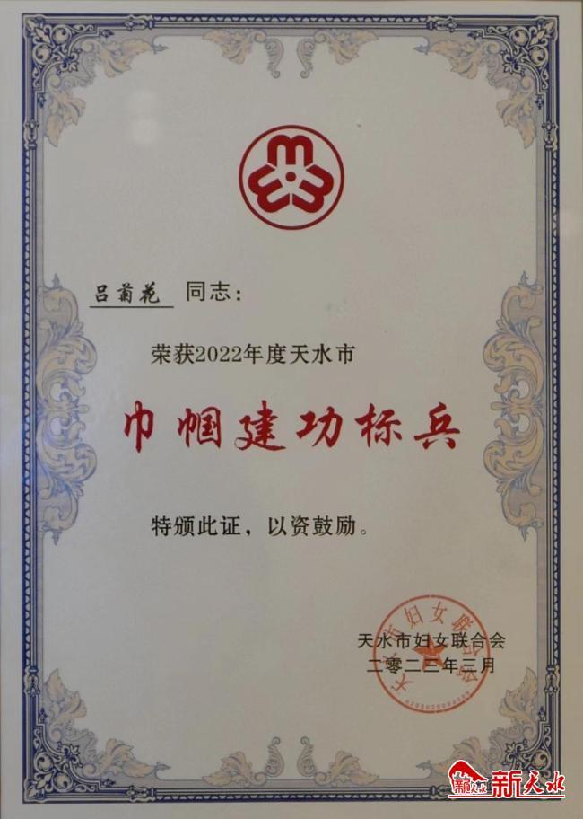 新天水讯 3月8日,天水星火机床公司女职工吕菊花被授予天水市“巾帼建功标兵”荣誉称号。