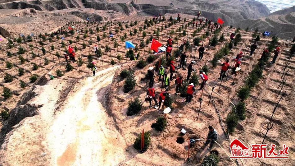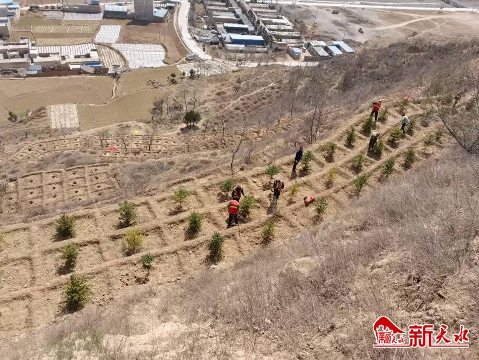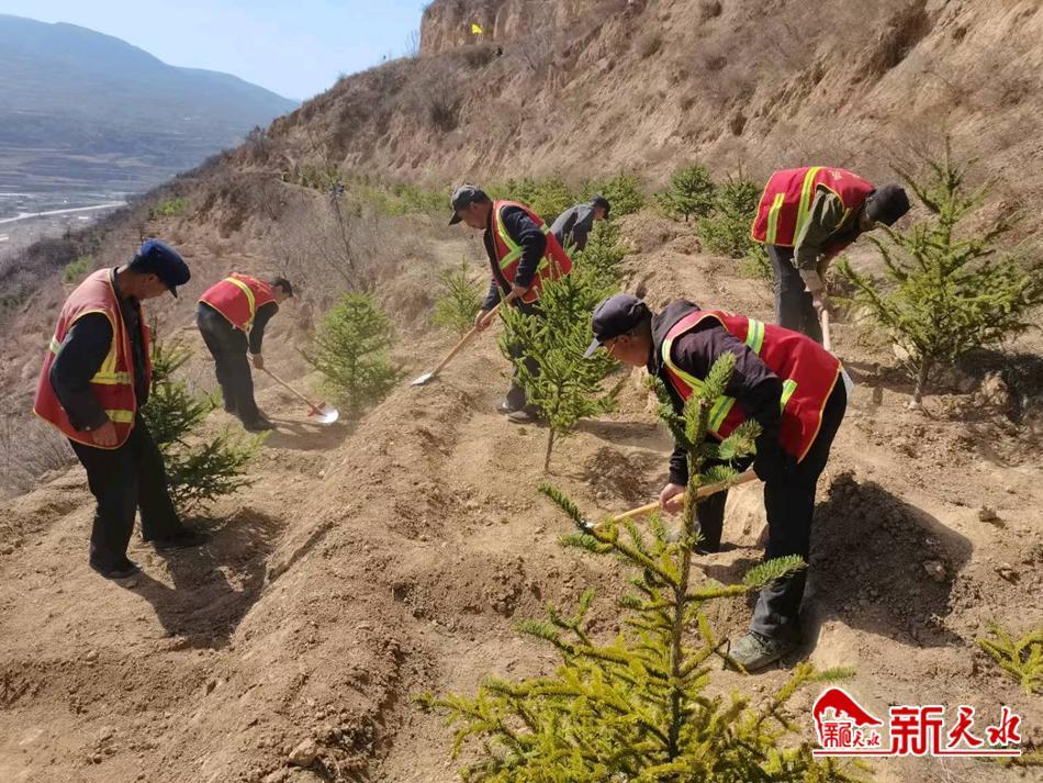 植树现场,大家三五人一组,分工合作、默契配合,扶正树苗、挥锹填土、踏土夯苗、提桶浇水,每道工序做得认真细致,共同栽植好每一株树苗。经过近三个小时的植树,一排排新栽红叶李、云杉等树苗排列整齐、迎风挺立,为初春的武山大地增添了新的生机活力。