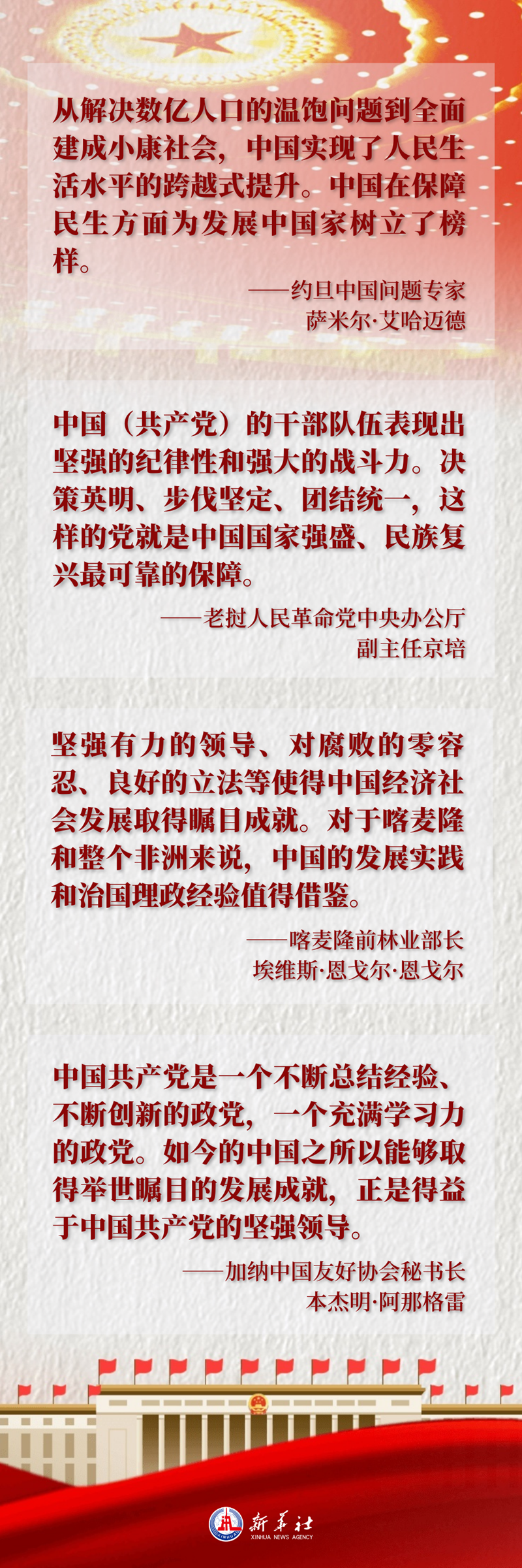 “贯彻以人民为中心的发展思想”“让现代化建设成果更多更公平惠及全体人民”“勇于自我革命”“一刻不停全面从严治党”……习近平主席讲话中关于中共治党治国理念的阐述,引发各国人士共鸣。