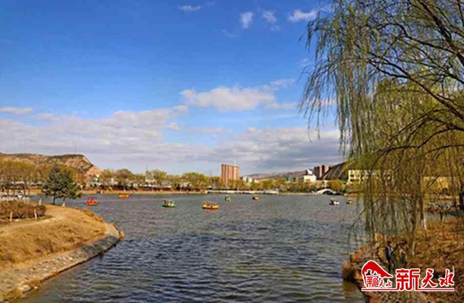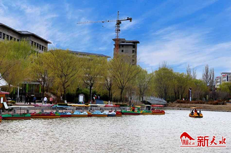 近日,随着天气渐暖,武山宁远生态园春意渐浓。柳如垂丝,碧波荡漾。蓝天白云晴空万里,风筝随风倒映湖中。迎春娇艳,海棠争春,人们泛舟湖上,处处一片生机盎然的春日景象。新天水通讯员 郭冰凌 摄