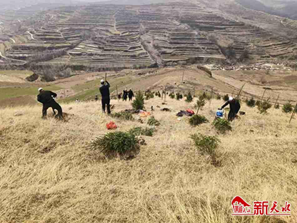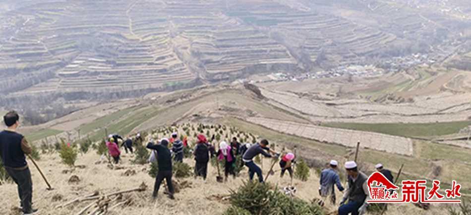 新天水讯 3月21日至22日,张家川县胡川镇组织党员干部、志愿者在胡川村西坡山体开展植树活动,活动共组织了志愿者和村组干部等100余人参与。