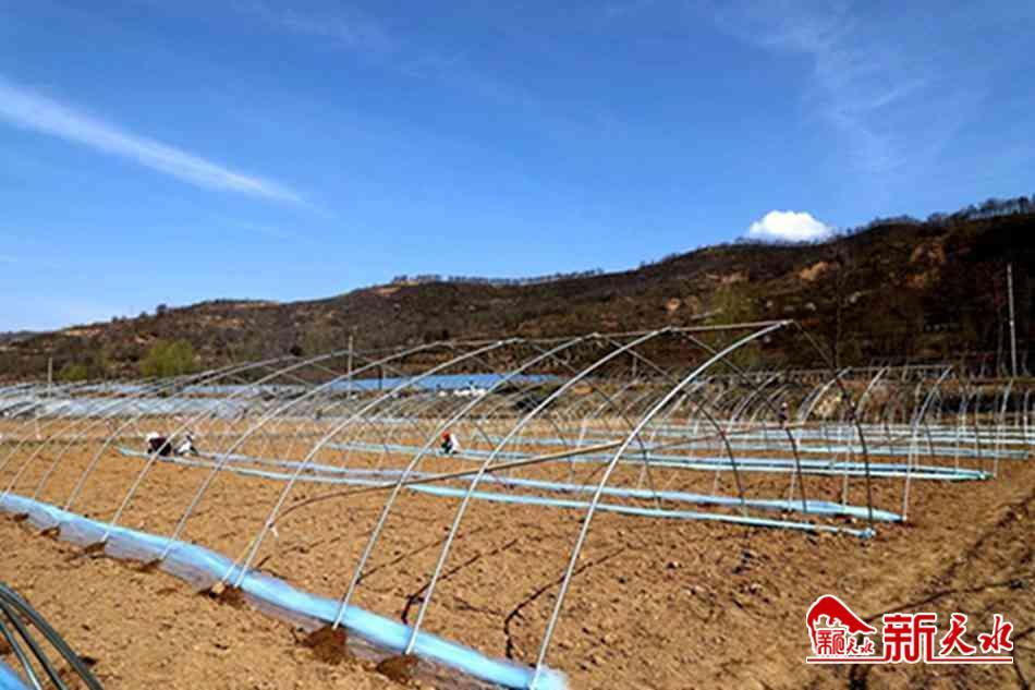 新天水讯 阳春三月暖,春种正当时。日前,在清水县永清镇暖湾村麒麟西瓜种植基地,工人们正忙着打孔、培土、覆膜,放眼望去,密密麻麻的钢架拱棚耸立,已具雏形的大棚在阳光的照射下银光闪闪。