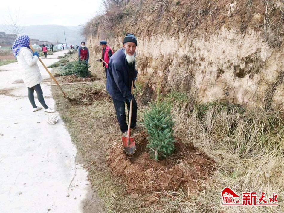 武山县杨河镇:耄耋老人义务植树 党群合力绿化家园