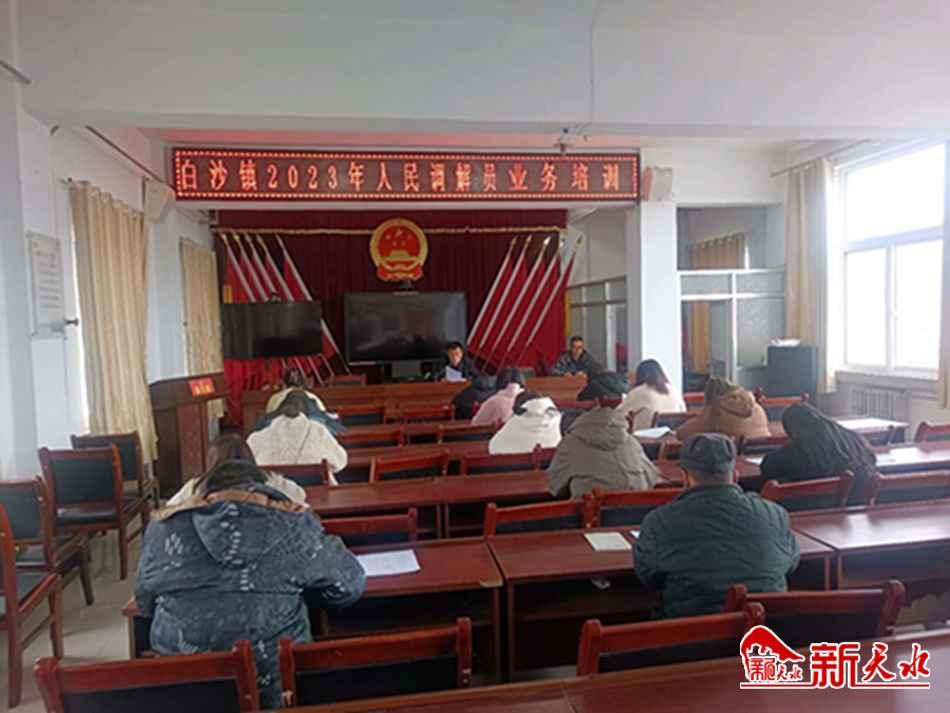 新天水讯 今年来,为促进人民调解工作扩面提质,清水县白沙镇坚持从大处着眼、小处着手、细处发力,注重从思想深处淬炼、用具体实践锻造,坚持在理论培训、督导检查等方面下功夫,不断提升人民调解员队伍的业务技能和实践水平,推进人民调解各项工作任务落地生根。
