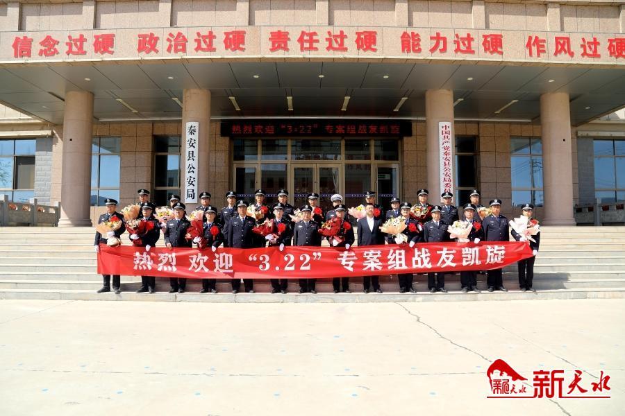新天水讯【记者张彬霞】4月14日,秦安县公安局举行“3·22”特大电信网络诈骗案专案组凯旋欢迎仪式。