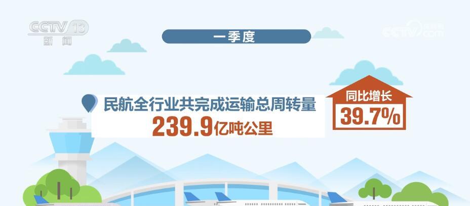 一季度,民航全行业共完成运输总周转量239.9亿吨公里,同比增长39.7%,行业总体运输规模相当于2019年同期的77.6%,较2022年四季度大幅提升38.5个百分点。其中,航空客运需求快速恢复,一季度全行业共完成旅客运输量1.29亿人次,同比增长68.9%,旅客运输规模相当于2019年同期的80%,较2022年四季度大幅提升51个百分点。国内航线完成1.26亿人次,同比增长66.6%,规模相当于2019年同期的88.6%;国际航线完成224.2万人次,同比增长717%。