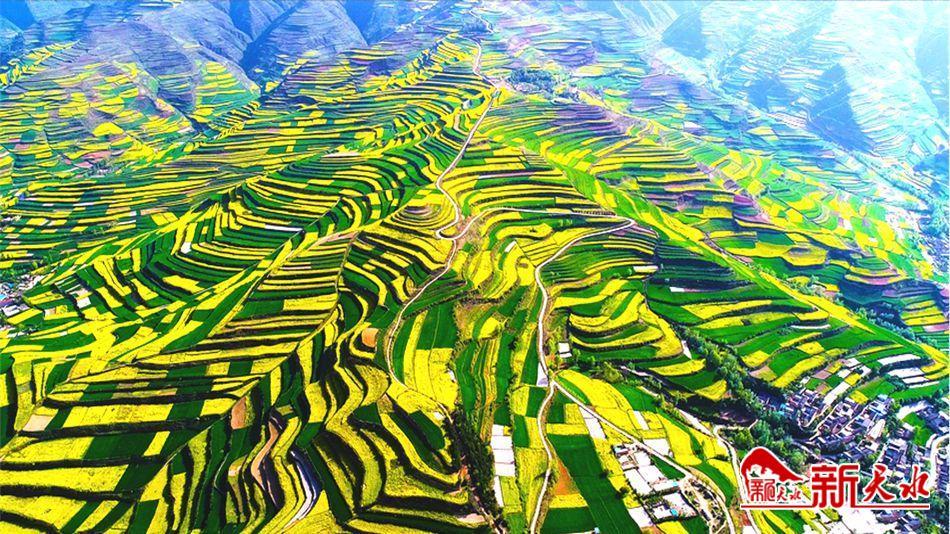 依托农业资源优势,推出油菜花海“金色”观光游。每年4月,武山进入了油菜花竞相盛开的季节,遍地金黄,满城飘香,吸引四方游客、八方宾朋前来观光打卡。2019年,流金溢彩的武山油菜花海名片登上国庆70周年天安门广场彩车,武山已成为媲美江西婺源、陕西汉中的中国最美梯田油菜花海。