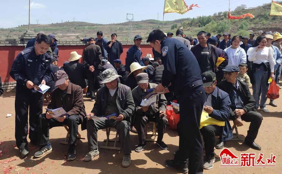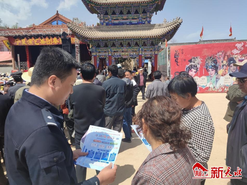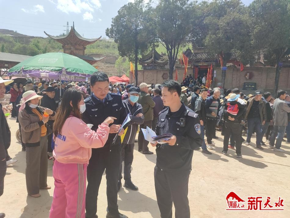 新天水讯【记者景春燕】为进一步提升辖区群众的反诈意识和毒品防范意识,4月25日,秦安县公安局千户派出所利用庙会人员密集的有利时机,组织开展了反电诈和禁毒宣传活动。