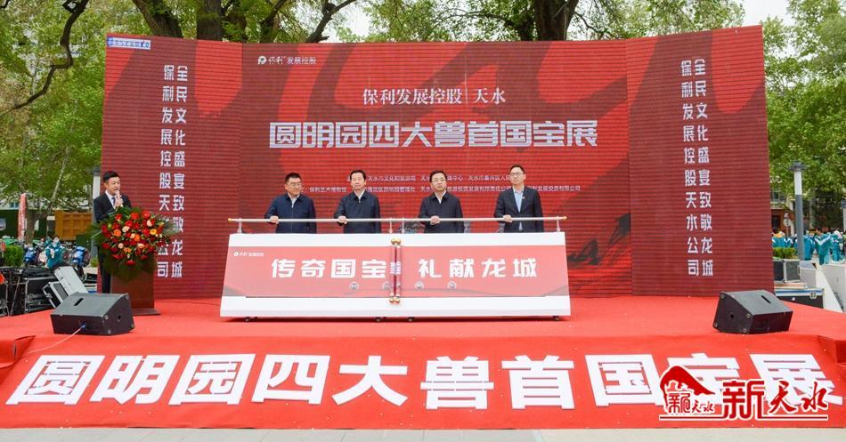 “传奇国宝 礼献龙城 ” 。4月28日,由天水市文化和旅游局、天水市融媒体中心、天水市秦州区人民政府主办,保利艺术博物馆、北京市海淀区圆明园管理处、天水市文化旅游投资发展有限责任公司、天水保利发展投资有限公司承办的圆明园四大兽首国宝展”在天水保利·和光尘樾营销中心正式开展。曾流失海外140余年的圆明园十二生肖兽首中的牛首、虎首、猴首、猪首四件国宝兽首第一次在天水展出。天水人将在家门口亲身体验国宝的文化魅力,感受中华文明的璀璨光辉。