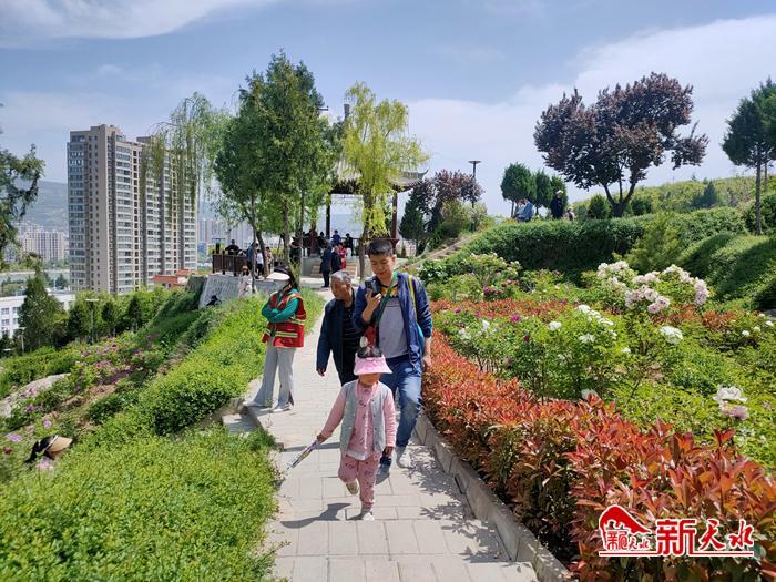 在秦州区豹子沟珍稀植物园内,各色牡丹花开正艳,清风徐徐,花香幽幽,游客络绎不绝。记者看到,景区内显眼处张贴有文明标语和提示牌,也有身穿红马甲的工作人员坚守岗位,进行文明旅游引导。