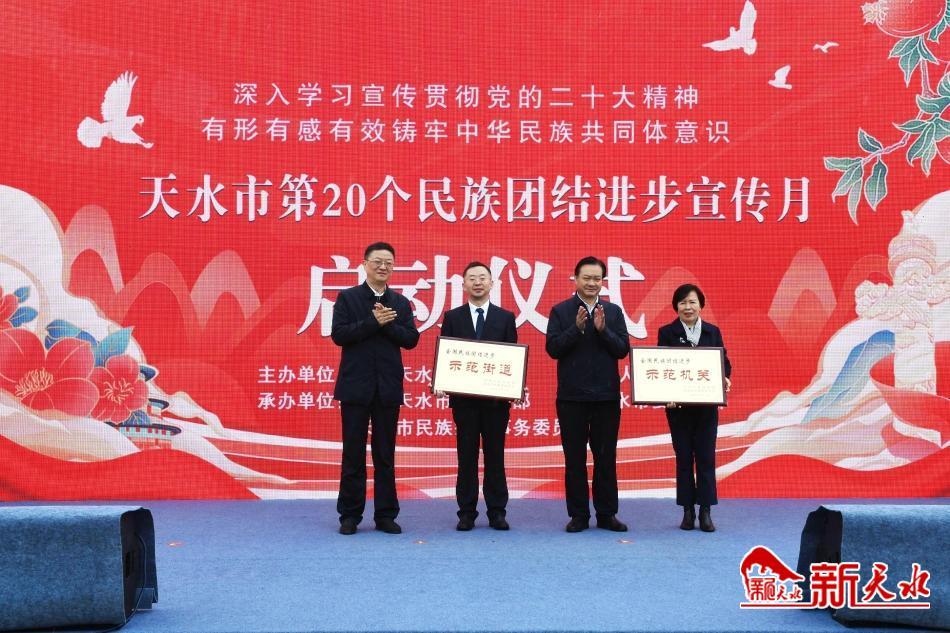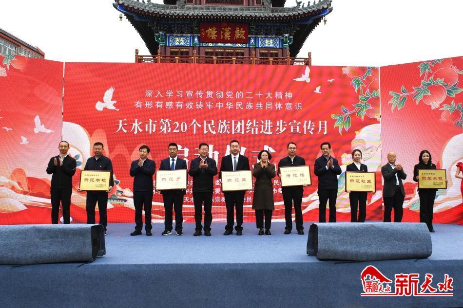 启动仪式上,宣读了国家民委《关于命名第十批全国民族团结进步示范区示范单位的决定》,省委宣传部、省委统战部、省民委《关于命名第八批全省民族团结进步示范区示范单位的决定》,并为荣获“第十批全国民族团结进步示范单位”的市教育局、秦州区中城街道授牌。活动现场表演了《同心共筑中国梦》《中华一家亲》等歌舞,展现了各族群众团结奋斗、繁荣发展的和美景象。