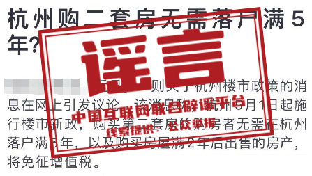 谣言:杭州购二套房无需落户满5年?