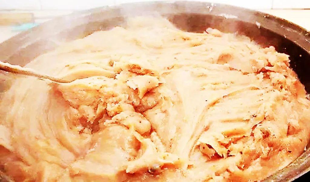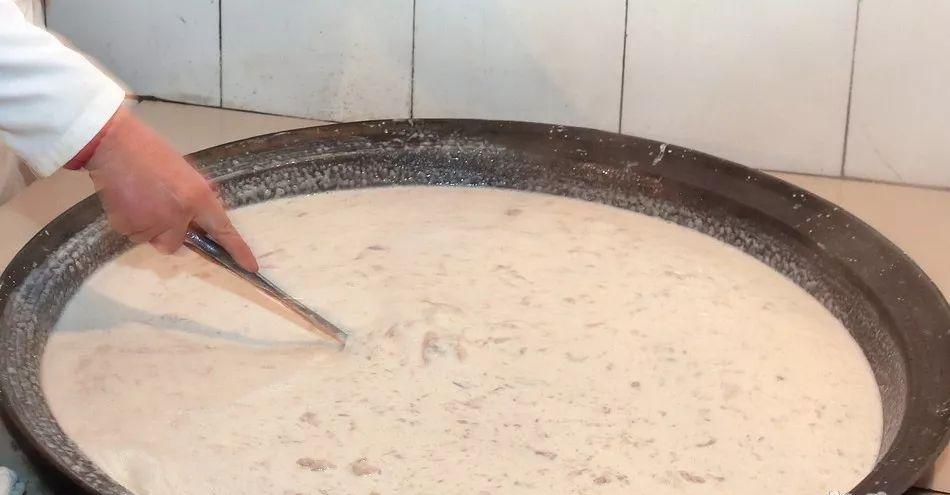 慢煮:把荞麦磨成浆,过滤、浸泡、换水,直到留下干净的淀粉,加入温水在锅中文火慢煮,煮的过程中,锅里开始有块状的荞麦疙,一边煮一边不停地搅拌。