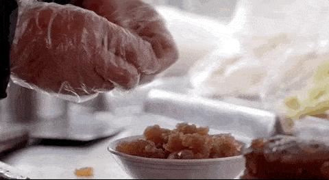 捏制、配料:最后便是呱呱制作技艺的点睛之笔,将回醒过的呱呱盛放在容器中,放凉便能自然凝固。由厨师用手将成品呱呱捏成碎块,放入碗中,再配上油泼辣子、芝麻酱、食盐、香醋、蒜泥等十几种调料,就可以尽情享用了。