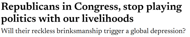 其实,美国两党并非不清楚债务违约的严重后果。