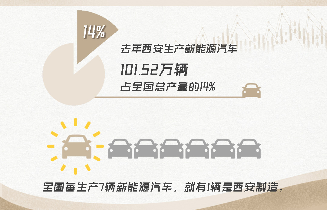 从去年到今年,中国经济的发力点之一是新能源汽车。而新能源汽车的亮点,在西安。去年西安生产新能源汽车101.52万辆,占全国总产量的14%。换句话说,全国每生产7辆新能源汽车,就有1辆是西安制造。