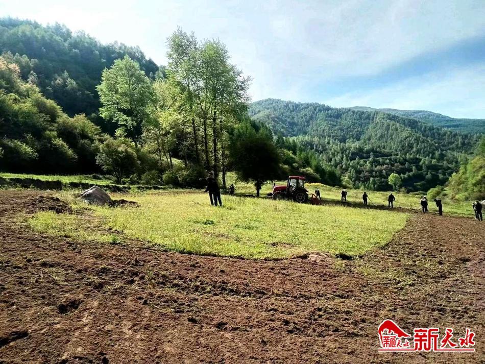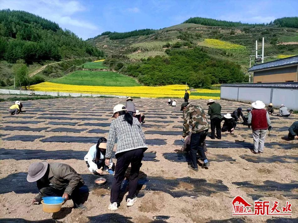 新天水讯 近日,武山县温泉镇双碌等村的田间地头热闹非凡,村民们正忙着种植万寿菊,耕地、覆膜、培土……大家干得热火朝天。
