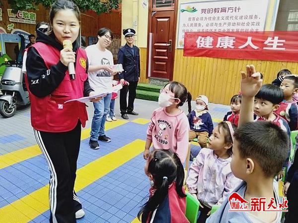 新天水讯【记者张玉平】5月31日,秦州区石马坪街道石马坪社区党委、石马坪社区新时代文明实践站联合童星幼儿园开展了“安全教育•护航成长”安全常识宣传活动,进一步提高学龄前儿童的安全防范意识和自我保护能力,织牢织密儿童安全网,合力为孩子们撑起安全“保护伞”。
