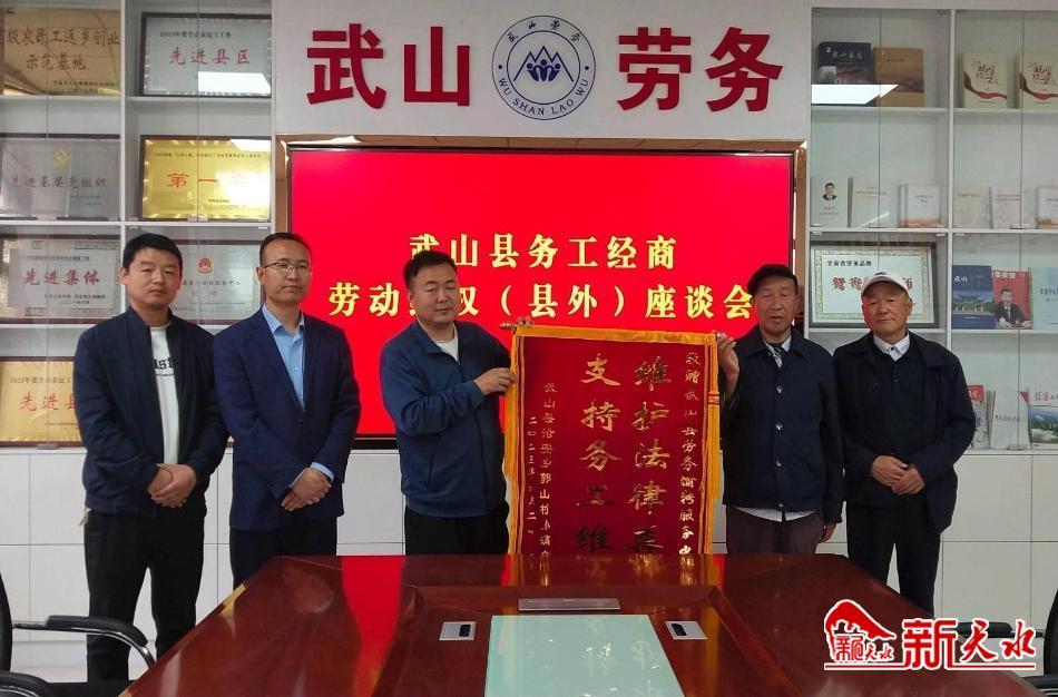 新天水讯 6月2日,武山县务工人员孙满仓将写着“维护法律尊严,支持务工维权”的锦旗送到县劳务输转服务中心,感谢县劳务输转服务中心和武山驻山西内蒙古劳务工作站为其追回工伤赔偿。