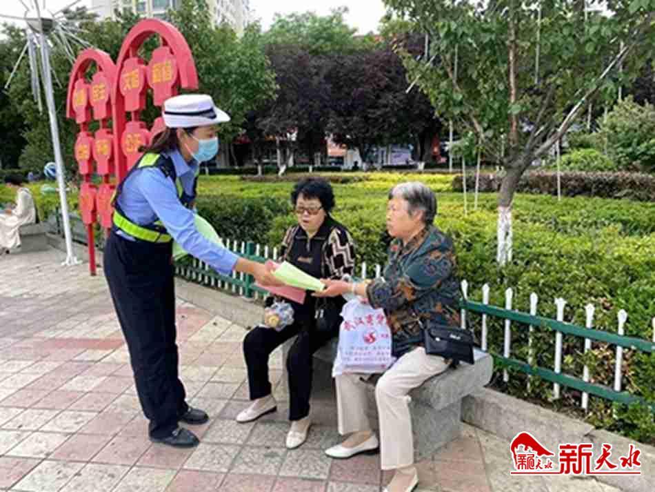 新天水讯 为进一步推进全县道路交通“除隐患,查违法,保安全”专项整治工作的开展,提高人民群众交通安全意识和安全防范能力,预防和遏制道路交通事故的发生,近日,秦安县公安局交警大队组织民辅警深入辖区兴国文化广场,开展道路交通安全宣传活动。