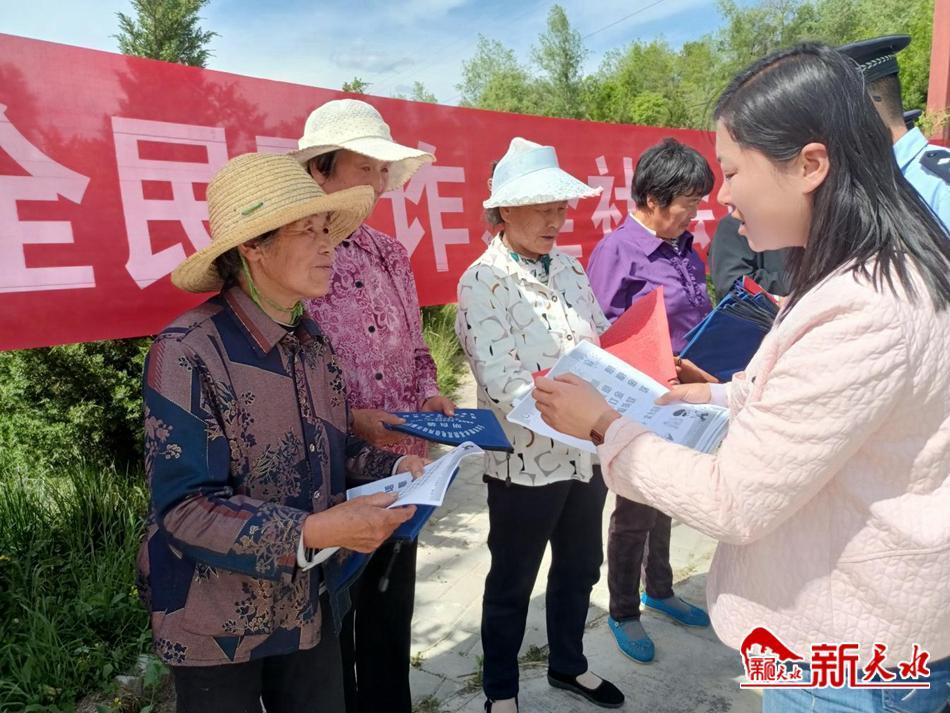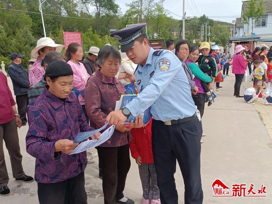 新天水讯 6月6日,清水县秦亭镇综治中心联合派出所,在赵尧新村集中开展防范电信网络诈骗和养老诈骗宣传活动。