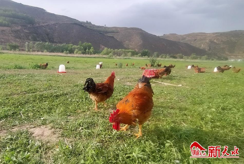 仲夏时节,走进武山县榆盘镇下河村林下鸡养殖基地,公鸡的打鸣声远远传来,不绝于耳的鸡叫声仿佛一曲曲动听的致富歌谣,回荡在村中。走进养殖基地,只见散养于林间地头的生态鸡,“野性”十足,轻盈若飞鸟,在野外闲逛奔跑,有的飞向树枝互比站高,有的飞追空中划过的虫蛾,有的刨土倾卧林间草丛晒着暖洋洋的太阳。在郁郁葱葱的山林之中,一群群生态鸡欢快地或在觅食、或在嬉戏,构成一幅生动的产业发展图。
