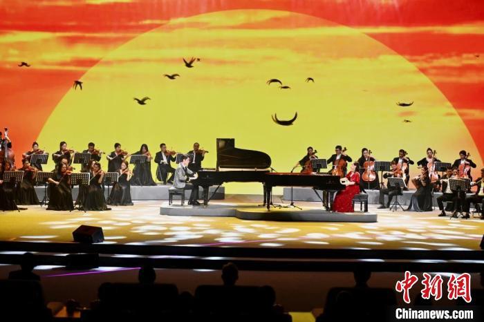 6月17日,第十五届海峡论坛大会在福建厦门举行。图为两岸艺人合作弹奏双钢琴《海峡协奏曲》。 中新社记者 王东明 摄