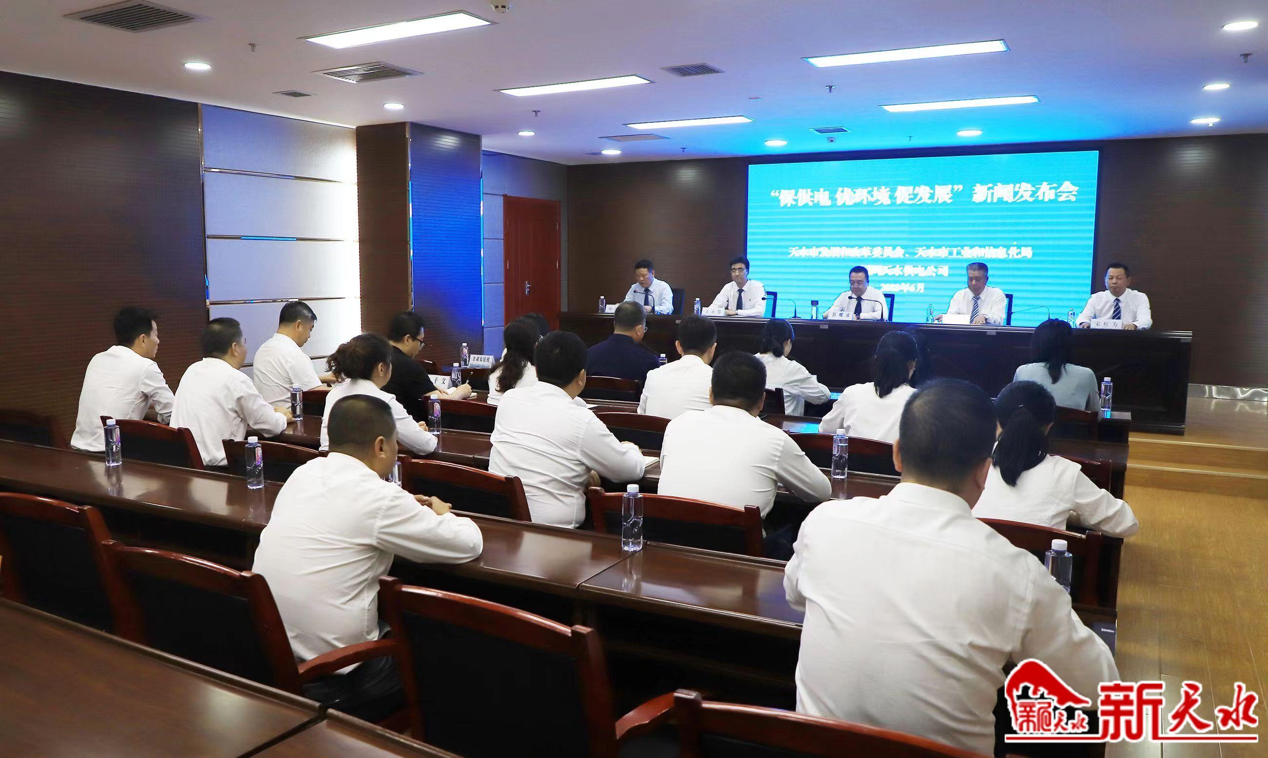 新天水讯(记者朱君芳)6月20日,天水市召开“保供电 优环境 促发展”天水电网迎峰度夏电力保供新闻发布会。市发改委、工信局、国网天水供电公司相关负责人向各大媒体介绍了天水电网迎峰度夏电力保供的重点举措,并回答了记者关心的问题。