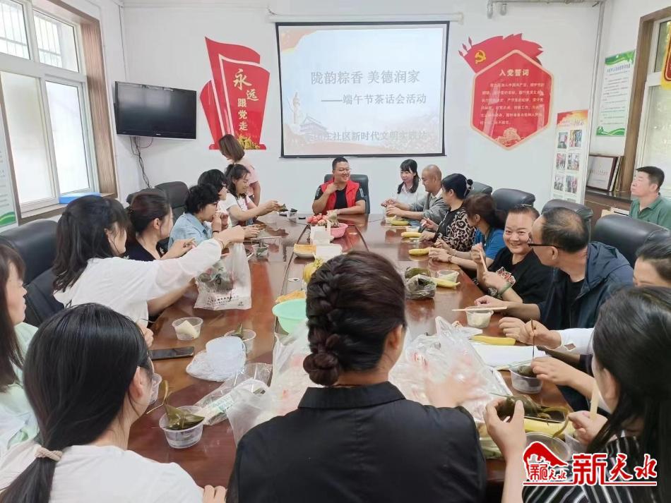 新天水讯【记者张玉平】近日,石马坪街道东团庄社区新时代文明实践站借端午节契机组织社区党员、辖区居民代表、国企退休人员、志愿者及社区工作人员开展“陇韵粽香∙美德润家”端午节主题活动。